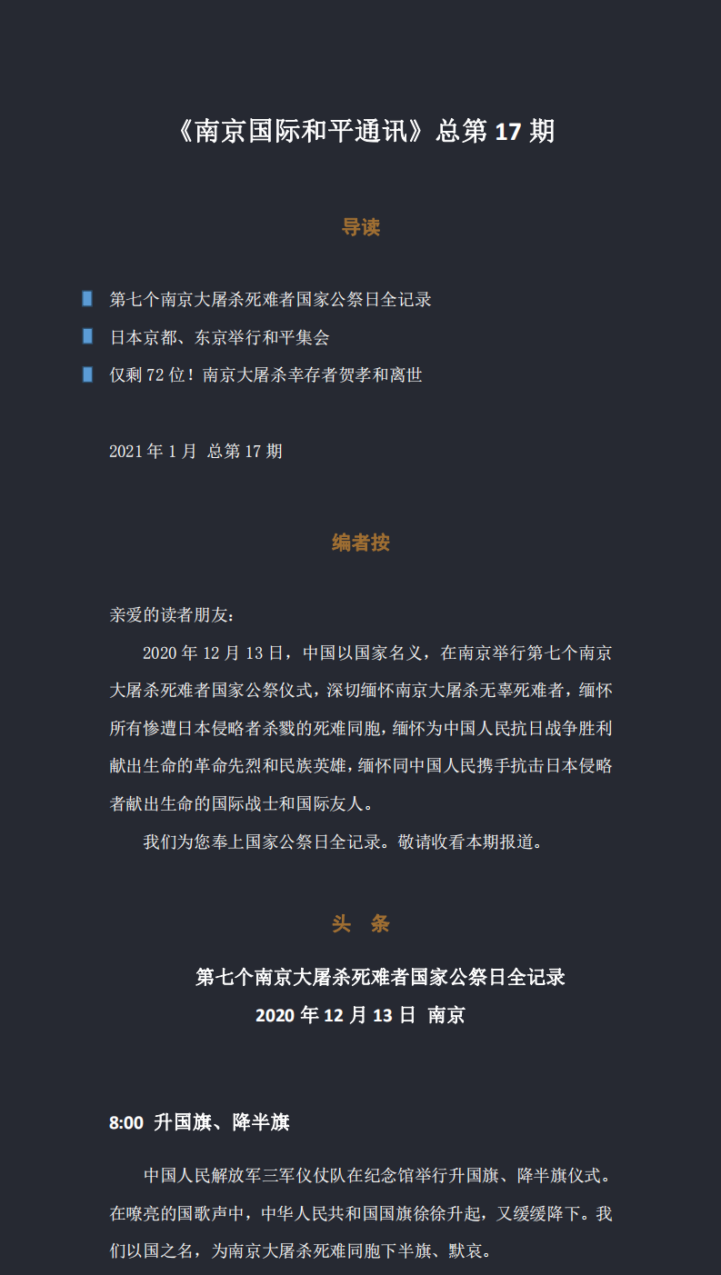 第七个南京大屠杀死难者国家公祭日全记录