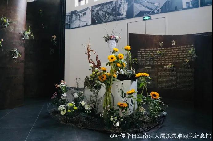 8月14日“慰安妇”纪念日:花语展示教育项目第二期”在分馆——南京利济巷慰安所旧址陈列馆举行。序厅正中“无言的泪”下方,摆放着花环少女头像,少女的周围围绕着向日葵、橄榄枝、白掌、雏菊等,这是我们在用鲜花缅怀、纪念她们。