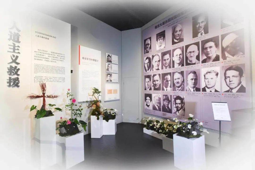 11月22日安全区建立:以代表友谊的常春藤相连作花艺装置,配以代表南京的梧桐叶,寓意感恩的康乃馨、风铃花,以及象征着英雄气概和不屈精神的松、 红木棉、枫叶等素材呈现,表达对南京安全区国际委员会成立的纪念和对在黑暗日子里伸出援手救助难民的国际友人们的感恩,对人道主义精神的歌颂。“花语”作品还配以星光灯,寓意着难民收容所的建立,为难民带来生的希望。