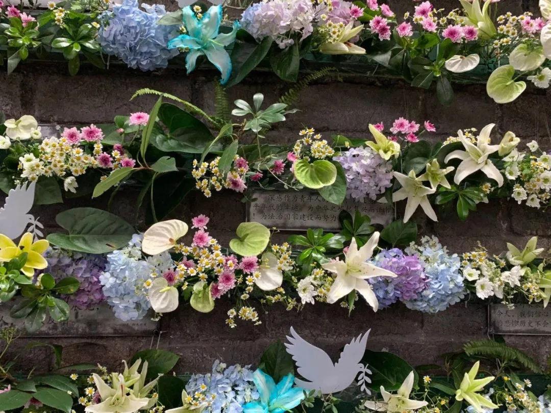 9月27日魏特琳生日:为向魏特琳致敬,第七期花语活动以魏特琳女士生前最爱的菊花为主体创作。寄语牌上写着“魏特琳女士,您看,您最爱的菊花在您面前盛开。恩情永在,永生金陵。”