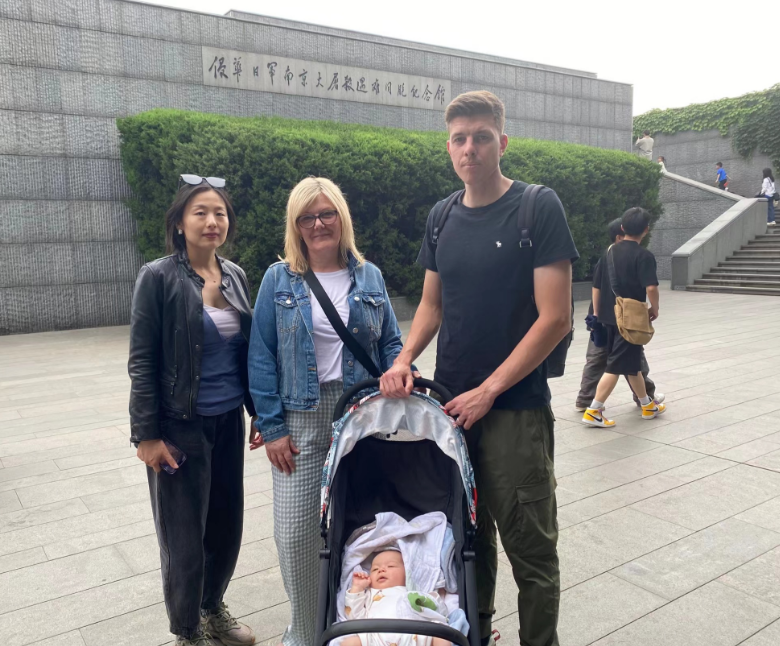 来自英国的David Buckwel在中国妻子的带领下来到纪念馆,他们还带上了孩子和老人。David Buckwell 说:“印象最深刻的是展厅内遗骨坑的尸骨,简直太残忍了。”他的母亲Sharon Mays说:“在纪念馆中,我第一次了解南京大屠杀历史,这段历史很沉重,愿残酷的战争不再发生。”