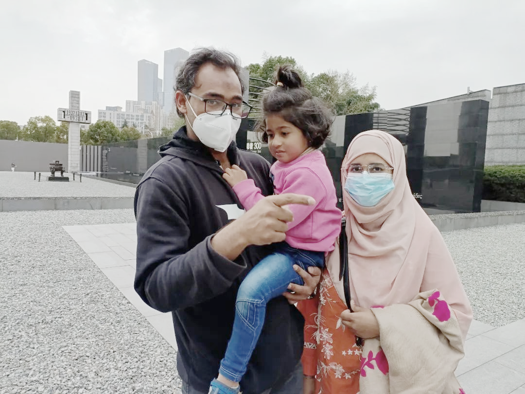 来自巴基斯坦的Yumnah Babar夫妇带着小女儿Sohaye Usman一同来到南京医科大学求学。Yumnah Babar说,他们是从姐姐那里了解到南京大屠杀历史。“姐姐5年前来中国留学时,曾经来到纪念馆参观过,回去后向我们讲述了这段历史。”
