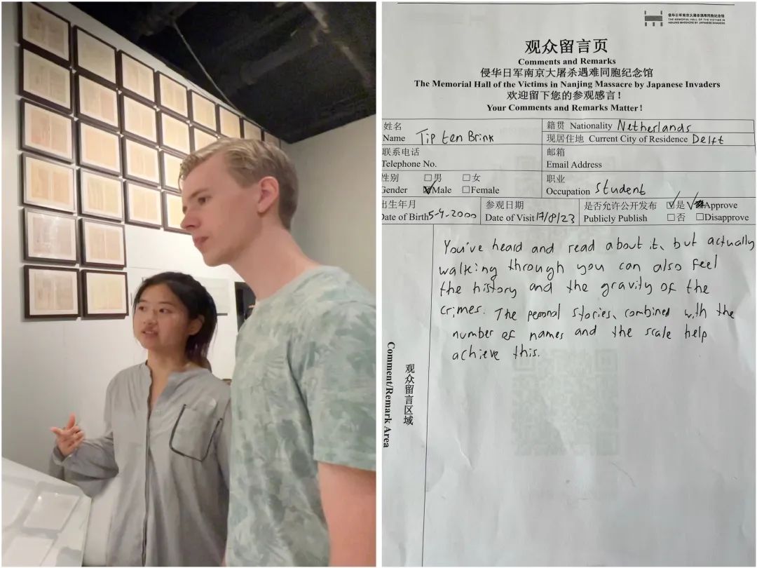 来自荷兰的观众Tip ten Brink在中国朋友的带领下来到纪念馆参观。