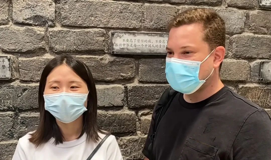 一位来自德国的观众在南京妻子的带领下,来到纪念馆参观。通过妻子,这位德国观众了解到南京和南京的历史。