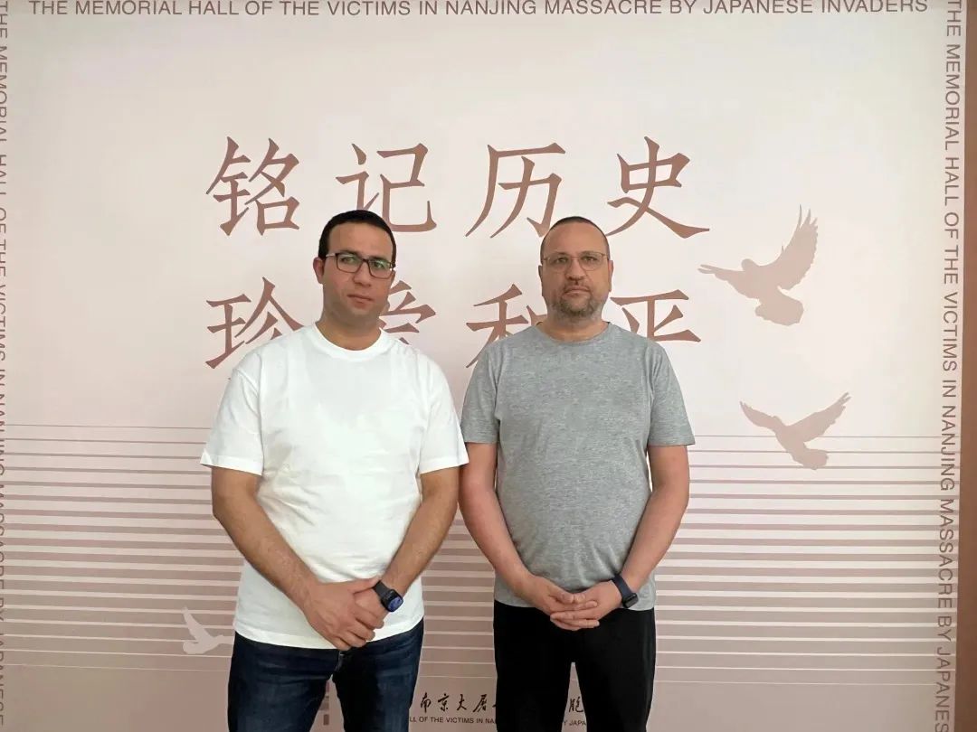 来自俄罗斯的Aleksandr和Evgeniy因工作原因来中国出差,他们特意前来参观纪念馆,他们说,以前在书中了解过南京大屠杀历史,来到纪念馆参观后深受震撼。