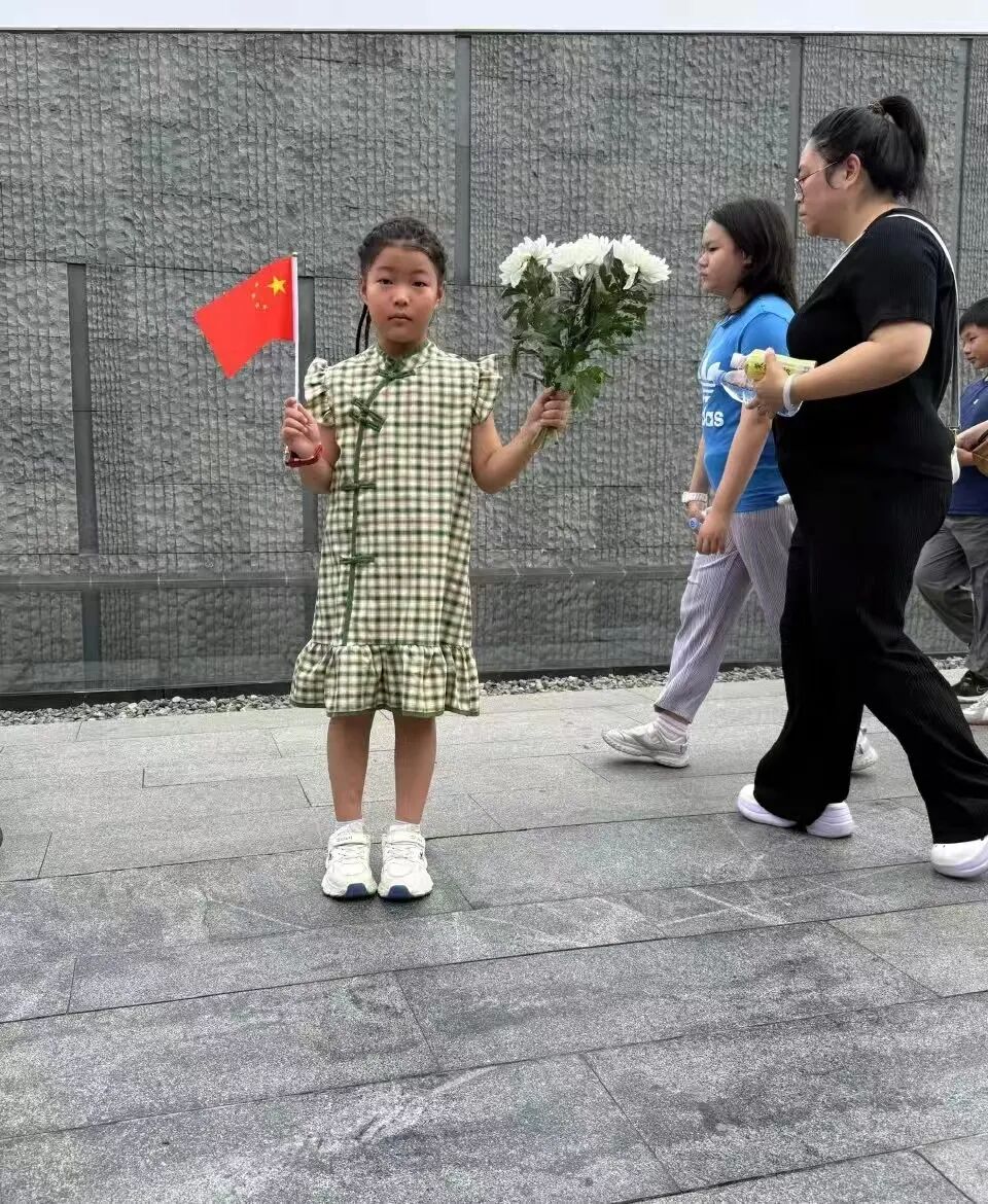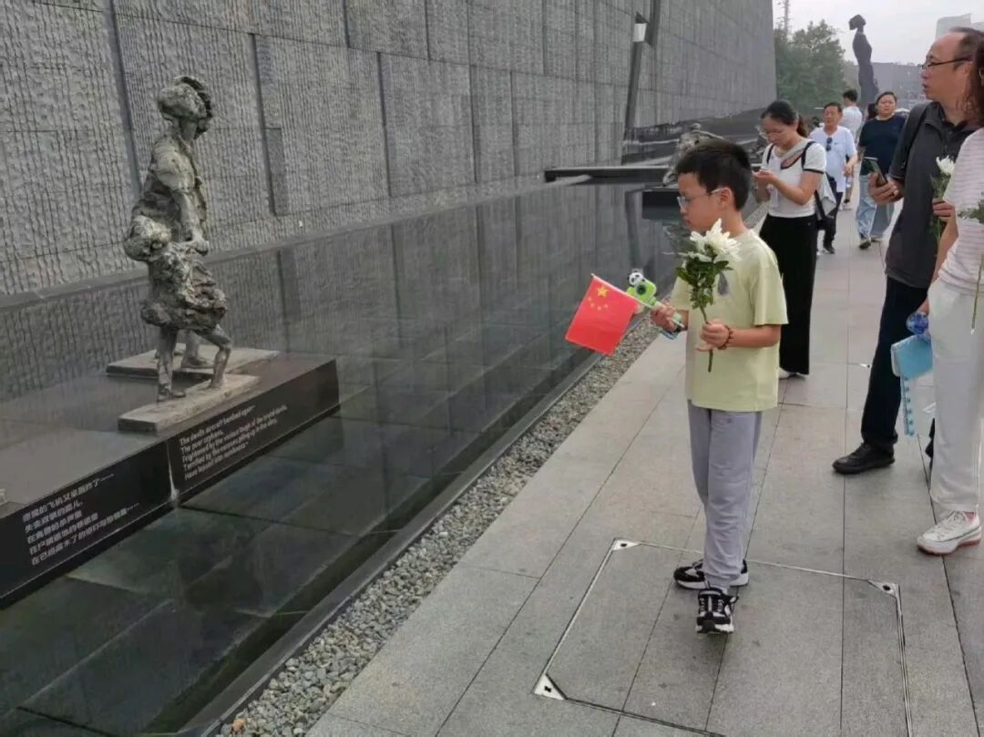 来自安徽阜阳的何先艳带着两个儿子来馆参观。何女士说:“看到五星红旗升起,听到和平大钟敲响的那一刻,我特别激动、自豪。希望孩子们能记住这份感动,长大后做一个爱国、有担当的人。”