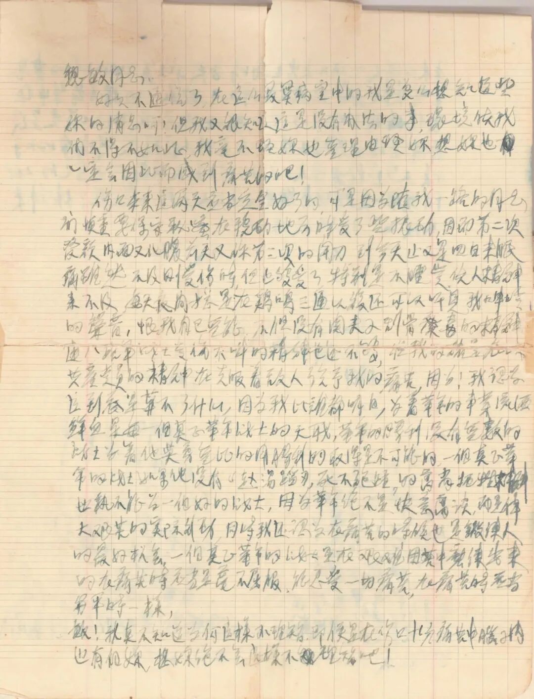 “魏敏同志:好久不通信了,在这么寂寞病室中的我是多么想知道些你的消息呵!