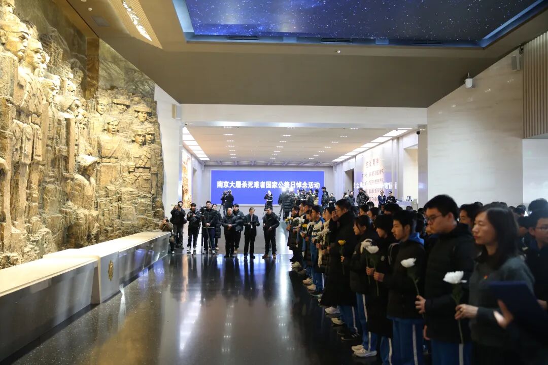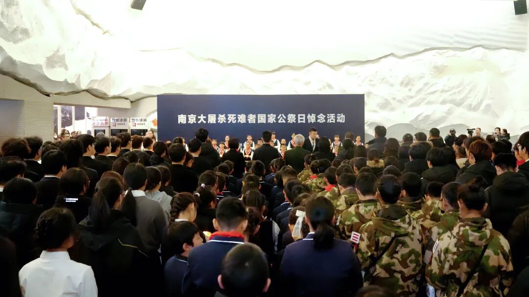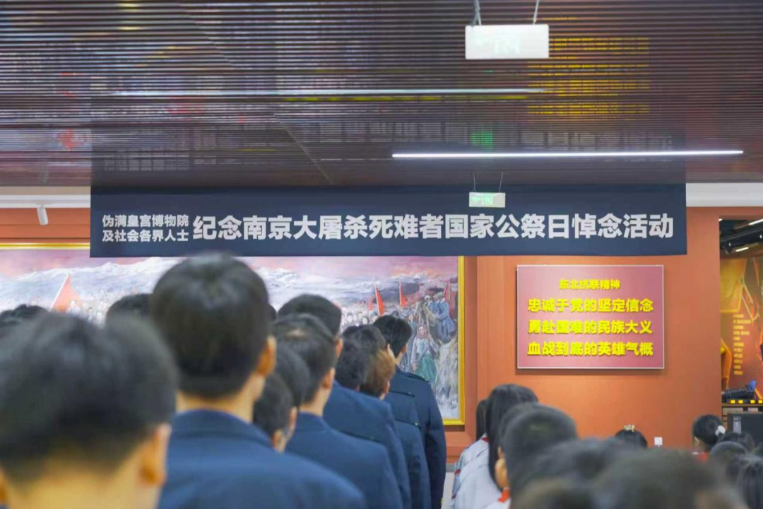 吉林长春。伪满皇宫博物院暨东北沦陷史陈列馆举行悼念活动。上午10时整,活动开始,现场奏唱中华人民共和国国歌。国歌唱毕,全场向南京大屠杀死难同胞以及所有在抗日战争中罹难的同胞默哀一分钟,沉痛悼念,寄托无尽哀思。随后,活动举行庄严的宣誓仪式,社会各界人士向英烈名录墙敬献鲜花,以此表达对英烈的深切哀悼与无尽哀思。