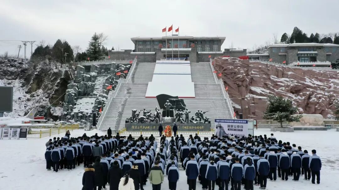陕西延安。上午10时,延安革命纪念馆广场庄严肃穆,延安大学师生、延安育英中学师生与纪念馆全体职工肃立,举行悼念仪式。国歌响起,所有人员佩戴白花,整齐肃立,随后向南京大屠杀遇难同胞及抗战英烈敬献花圈。大家分批次走进《伟大历程——中共中央在延安十三年》展览与《改变世界的战争——世界反法西斯战争视阈的中国抗战》专题展展厅。