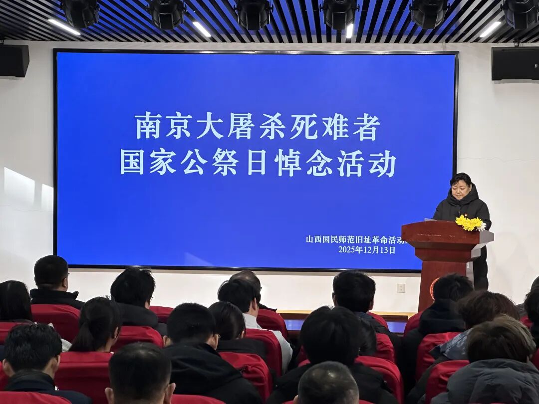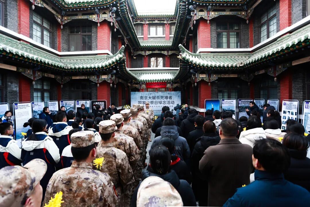 山西太原。上午10时,活动在雄壮的国歌声中开始。全体人员肃立行注目礼,深切缅怀遇难同胞与革命先烈。山西师范大学学生代表进行国家公祭日主题朗诵。全场人员垂首肃立,为南京大屠杀死难者及所有抗战英烈默哀。默哀毕,参与者依次缓步前行,向纪念区域敬献鲜花并深深鞠躬。仪式结束后,参与者分组参观了南京大屠杀历史图片展与馆内主题展览。