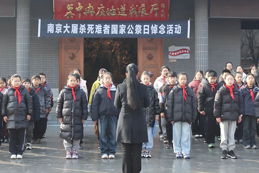 河南信阳。鄂豫皖革命纪念馆举行同步悼念活动。纪念馆全体职工共唱国歌,向死难同胞默哀。活动现场,讲解员代表朗诵纪念诗歌《民族的记忆》,以铿锵之声传递对历史的铭记、对和平的呼唤。12月12日,鄂豫皖革命纪念馆讲解员走进信阳市羊山外国语小学,以《人类的浩劫:1937南京大屠杀》图片展为内容,向师生们讲述了日军的残暴行径到中国军民的顽强抵抗,每一个细节都深深触动着师生们的心灵。