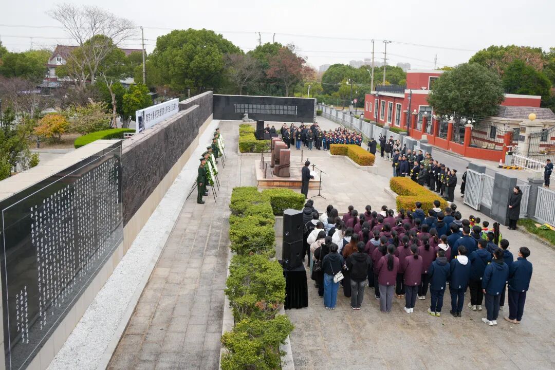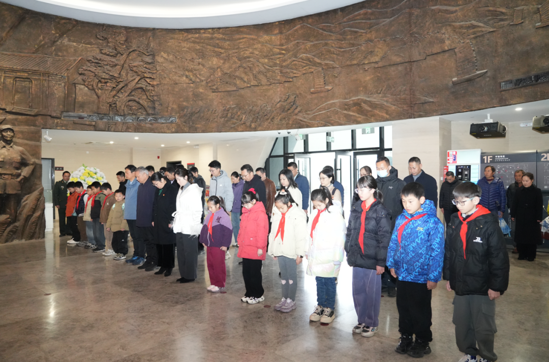 江苏常州。新四军江南指挥部纪念馆联合前马小学、武进市市场监督局开展主题为“铭记历史 缅怀先烈 珍爱和平 开创未来”的悼念活动,共同铭记那段刻骨铭心的历史。全体人员肃立,高唱国歌。默哀结束后,纪念馆代表缓步上前敬献花圈,全体人员行注目礼,表达对遇难同胞的哀思与敬意。随后,纪念馆宣讲员周如壹分享了抗日英烈刘别生的感人故事,重温那段中华民族浴血奋战的岁月。