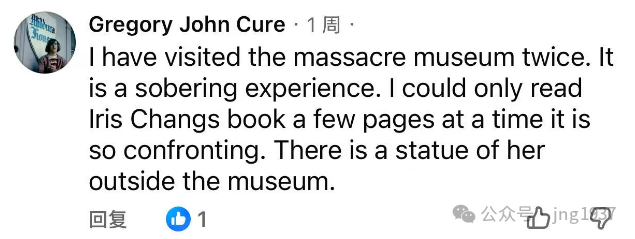 网友评论:“我曾两度到访这座纪念馆,每次都感到无比沉重。张纯如的著作,我一次只能读几页,书中的内容如此震撼人心。纪念馆中伫立着一尊她的雕像。”