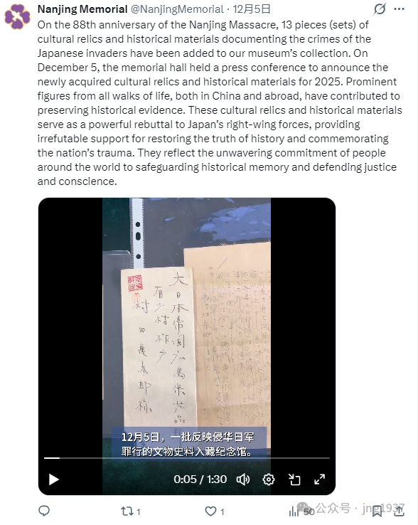 2025年12月13日,第十二个南京大屠杀死难者国家公祭日以国之名,悼我同胞,祭民族之殇。由我馆主持的#国家公祭#话题阅读数达62亿,#国家公祭日#阅读量达266亿,这背后有你对历史的铭记对和平的助力。