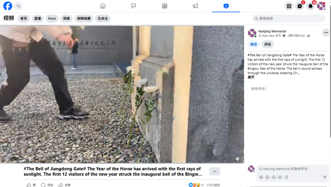 我馆海外社交媒体账号发布观众撞响和平大钟视频