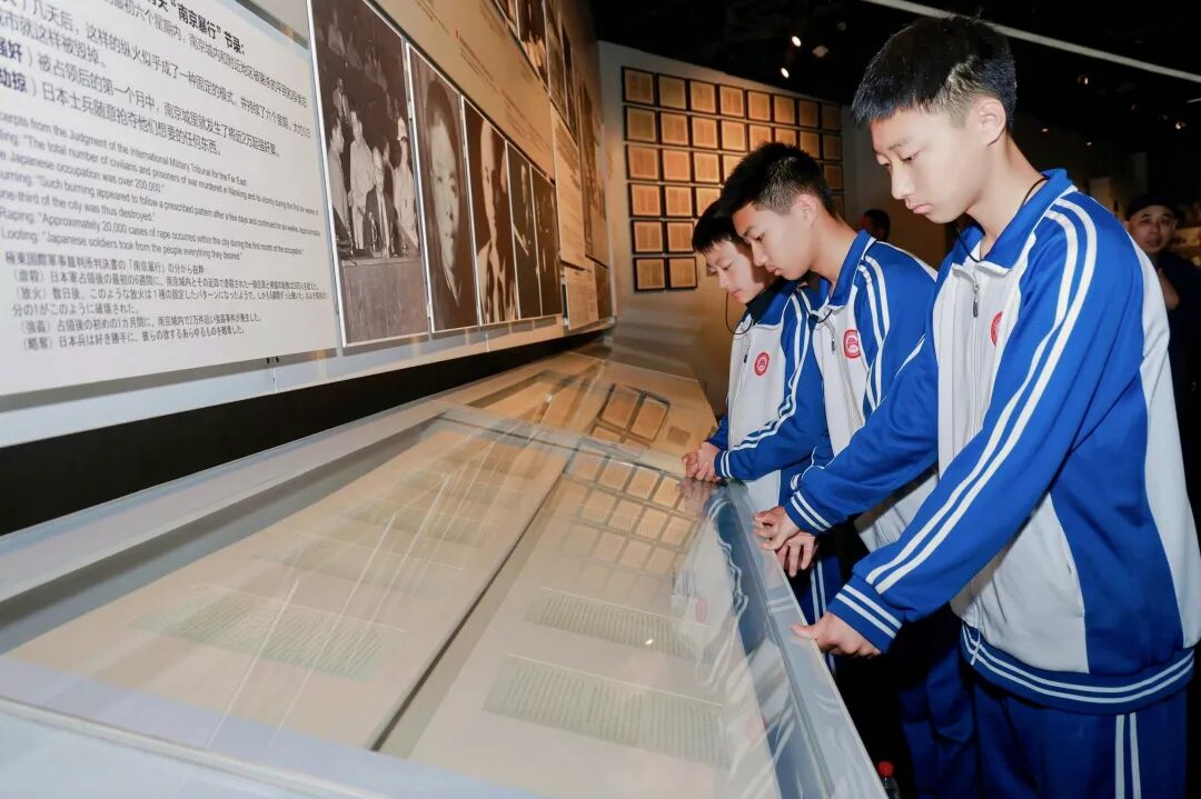 师生们走进“南京大屠杀史实展”。展厅中陈列着日军侵华的累累铁证,也记录着中国军民奋勇抗敌的身影。初二学生刘易佳说:“了解历史,首先要让自己走进历史情境。今年起,我正式担任中国人民抗日战争纪念馆志愿讲解员,希望以讲解为桥,传递抗战精神,引领更多听众走近历史、铭记历史。”