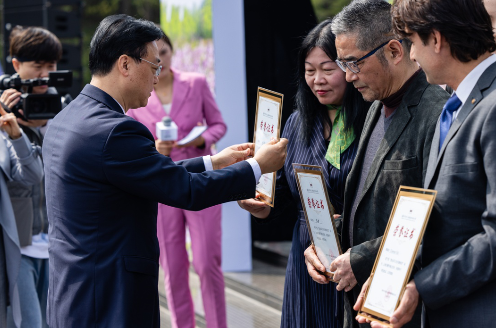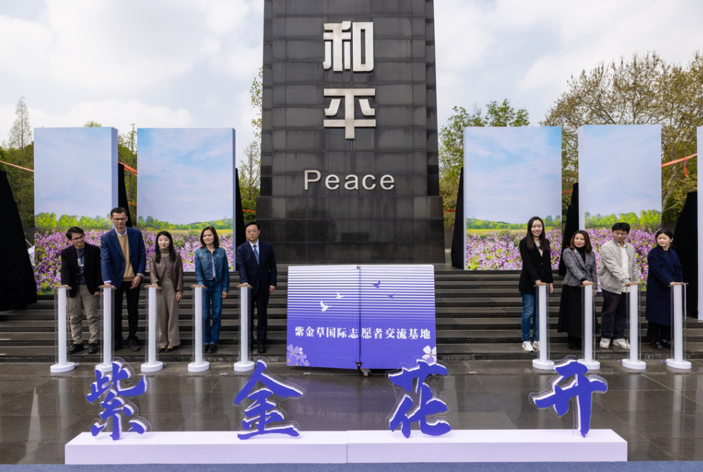 1937年の暗い歳月に暗闇を貫き今日に伝わってきた平和の光を受け継ぎ、国際ボランティアが引き続き平和の種を巻き広めている。4月1日、「紫金花開き――紫金草ボランティア交流会および紫金草文化伝播使者への証書授与式」が記念館の平和広場で行われた。