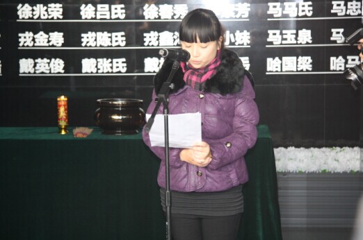 夏淑琴氏の孫さんが遭難者遺族の代表として発言する