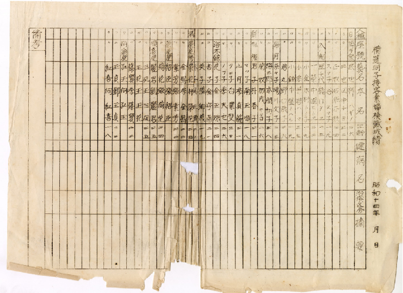 There is a historical document which is the original document reflecting the logistical situation of the Japanese Army by Sgt. Tanakiin the Sixth Hospital of the Japanese Kwantung Army. This historical document records the food rations for personnel and horses, medical treatment for officers and soldiers, etc., in which there is a directory of "sex slaves". This directory is medical examination forms for "sex slaves" in Japanese field hospital. It includes a directory of "sex slaves" with details such as their ethnicity, assigned house numbers, stage names, real names, and ages. Among them, there were 12 Chinese "sex slaves", with the youngest being 18 years old and the oldest being 36 years old.