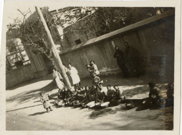 In particular, one photograph, labeled on the back “Near the dormitories on Tangshan Road, Nanjing (close to today’s Zhongshan Wharf) — the actual situation of children begging,” clearly documents the tragic circumstances of children begging on the streets under the occupation of Japanese invaders.