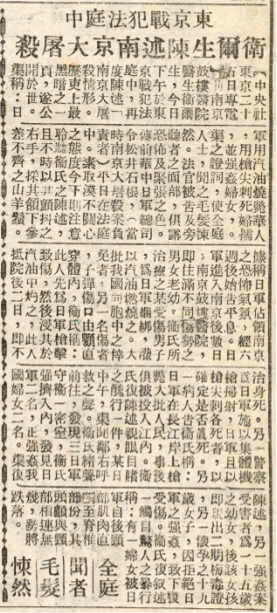 On December 18, 1937, The News and Observer reprinted an Associated Press report stating that “NANKING IS MADE SLAUGHTER SCENE AFTER JAP ENTRY.” At that time, many American newspapers carried the same report, indicating that the Nanjing Massacre was widely known internationally.