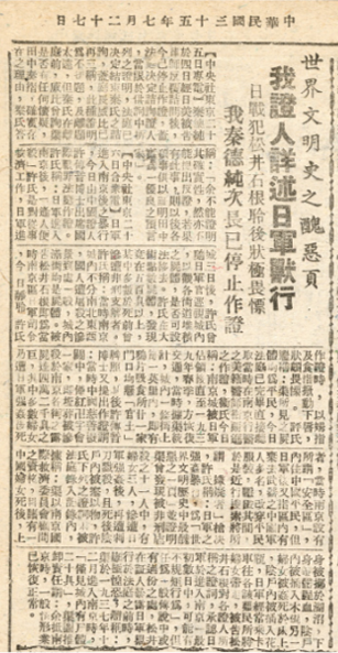 Old Newspapers: Reporting on Witness Testimonies at the Tokyo Trial