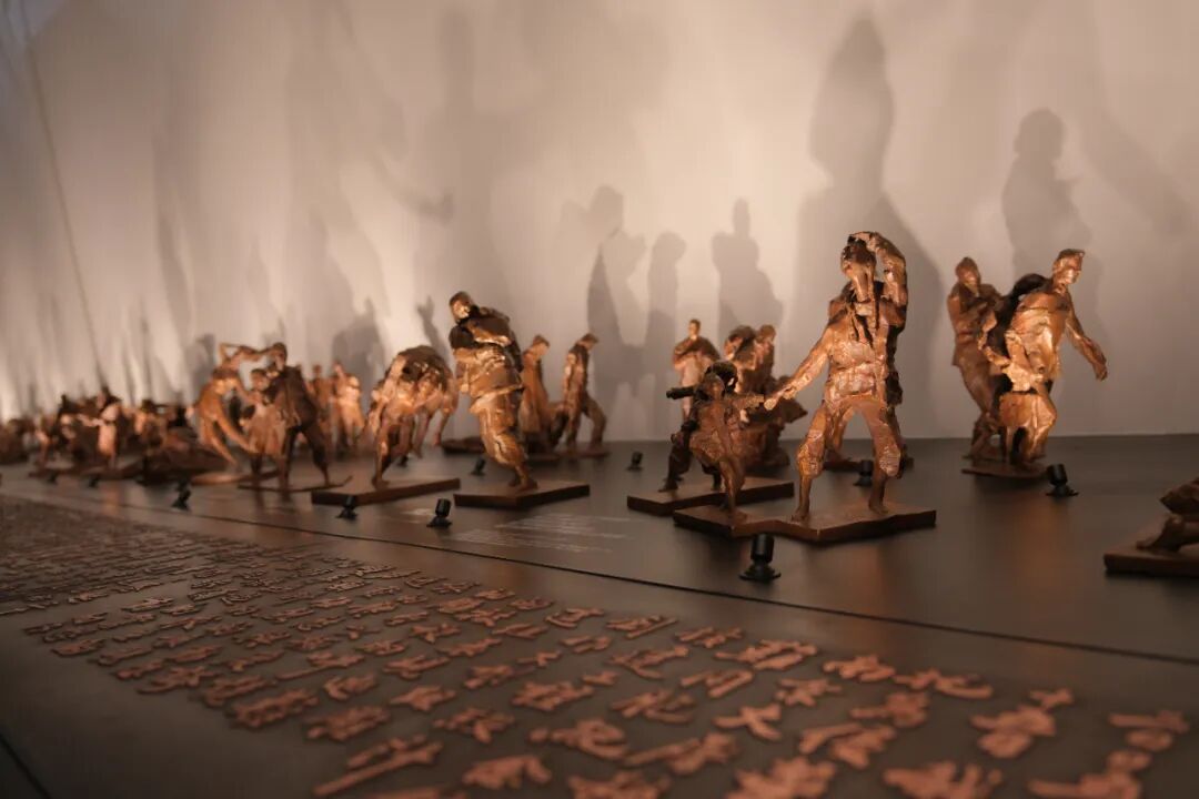 Centered on restoring the creative process and interpreting the historical significance, the exhibition is divided into three parts. The first part explores the origins of the group sculptures, clearly outlining the historical context in 2005 when Wu Weishan was invited to create the works, as well as his emotional journey and reflections. The second part documents the creation of the group sculptures. Through a rich mix of multimedia videos, graphic displays, and texts, it systematically presents the conceptual thinking and internal logic behind the sculptures, including preparatory sketches, artistic concepts, creation videos, photographs, and interviews with the artist. The third part displays the sketches for the sculpture Flight. The Memorial Hall has constructed a triangular exhibition space using steel structures, harmonizing with the solemn architectural style of the building. This part showcases 66 sets of precious sketches for Flight, featuring more than 110 individual figures, and is complemented by Wu Weishan’s calligraphic works. The emotional tension conveyed through his brushwork provides a direct insight into the artist’s state of mind during creation.